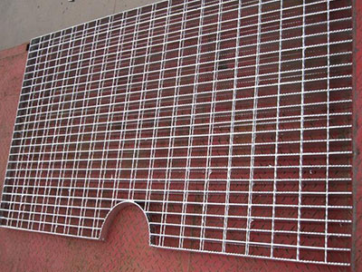 熱鍍鋅鋼格闆是由負載扁鋼和橫杆按一定間距經緯排列,在高壓電(diàn)阻焊機上焊接而成原闆,經切割、切口、開孔、包邊(biān)等工序深加工而成客戶要求的成品 。